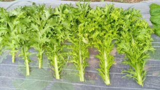 10月の初めに植えたワサビナですが、収穫が遅れたようでちょっと固い感じです。植えてから20日くらいから少しずつ収穫していくほうか良かったですね。他の野菜の成長がゆっくりなのでついつい見過ごしてしまったようです(反省)カツオナこれも同じ日に苗...