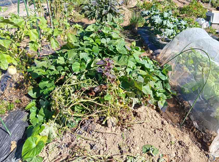 ここはイノシシにはやられてないけど、ひと月ほど植えるのが遅かったので小さいです。(一度植えたツルが伸びて、それを切った挿し木)