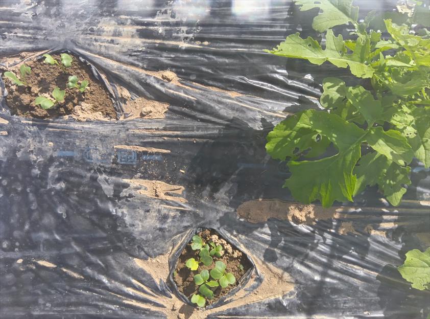 秋、冬向けに植えたのが、アスパラナ、コマツナ、カツオナ、ワサビナ、ダイコン、ジャガイモ