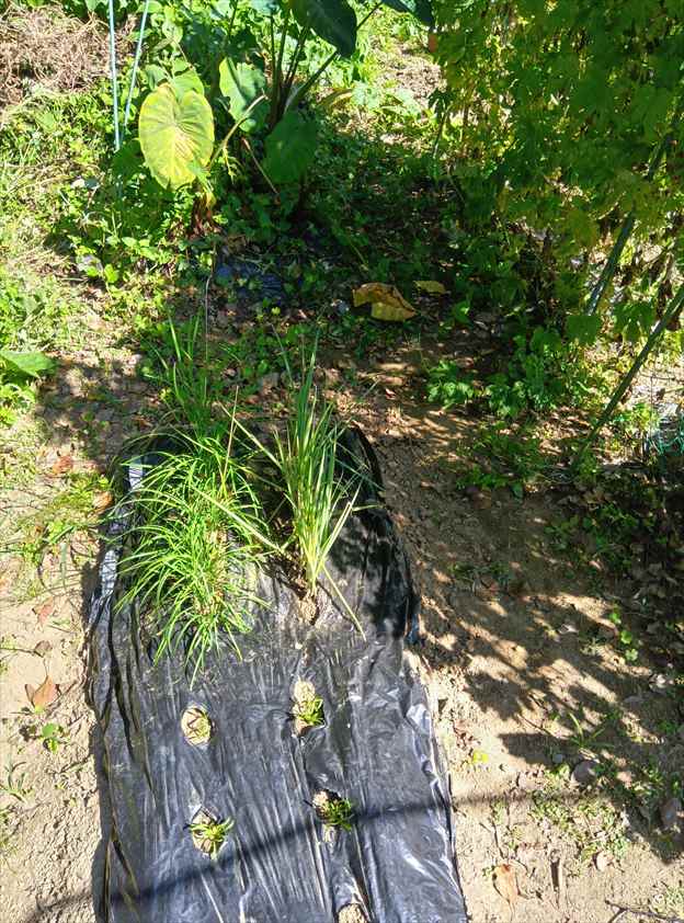 サトイモとプランターから移植したニラネギ、それと日当たりが悪いせいか大きくならないホウレンソウ