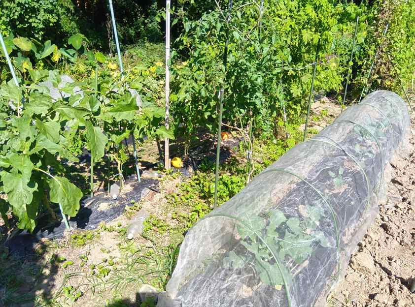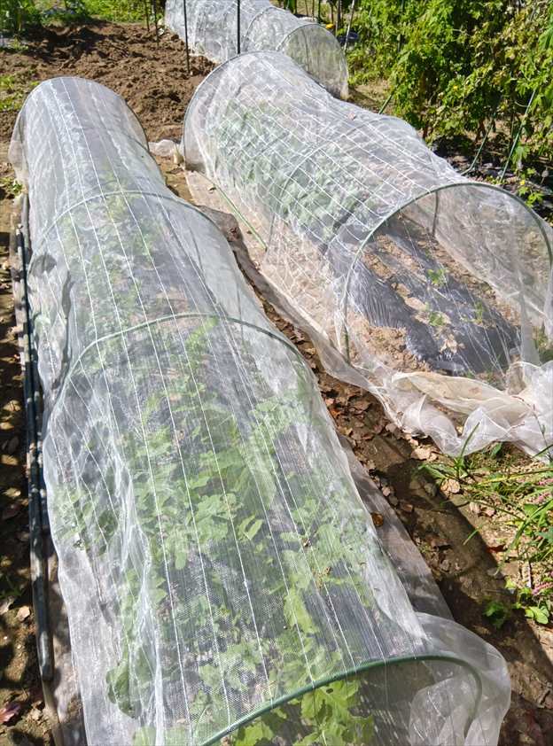 ダイコン 虫被害で種植えなおしてネット張ってます
