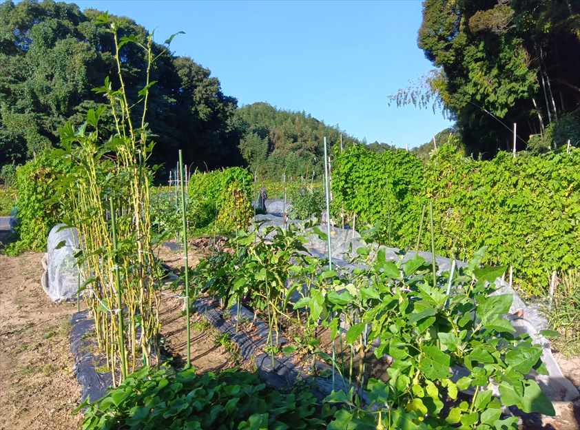 収穫できるのは、ナス、オクラ、サツマイモ、トウガラシ、ネギ