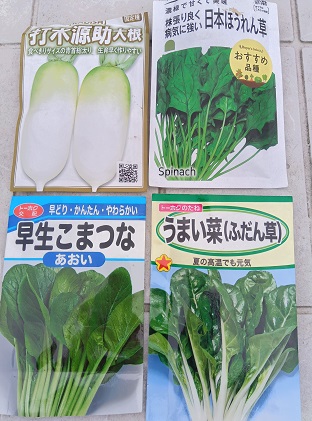 やっと朝晩が涼しくなりました。そこで今日は秋野菜4つ種まきをしました!