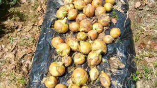 タマネギ タマネギ苗、植えました! 今年の5月に収穫したタマネギです。近くの農家さんから買った苗は立派だったので、うまく成長しました。(上の写真)この写真はホームセンターで買ったちょっと弱々しい苗を植えたもの。全体に小ぶりで形も不ぞろいでした。タマネギは保存ができるので重宝し... 2025.11.10 タマネギ