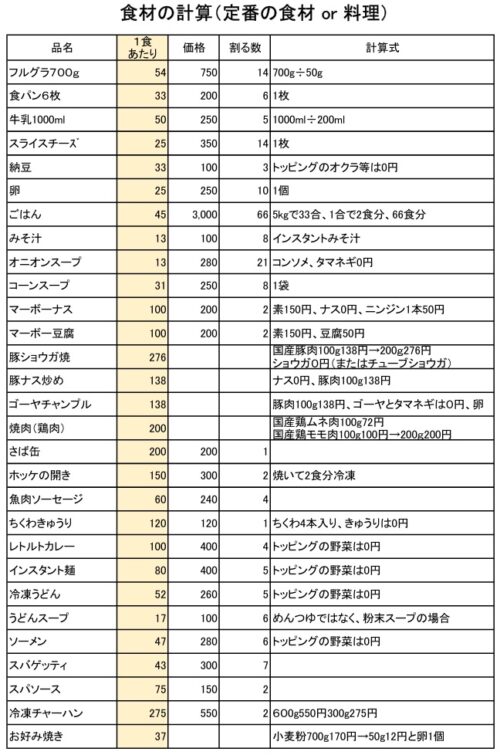 ひとり分の食費を計算してみました!(節約献立、時短献立)