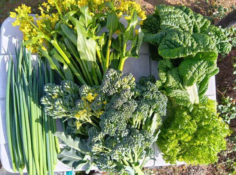 アスパラナ(オータムポエム)、カツオナ、小ネギ、茎ブロッコリー、ワサビナ