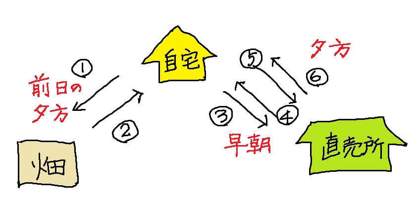・野菜を作る以外の労力 所要時間 3時間 移動距離 10km(畑も直売所も近い)