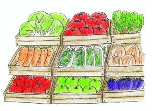 ➂朝7時頃、直売所へ野菜を持って行って値段を検討しシールを貼る作業